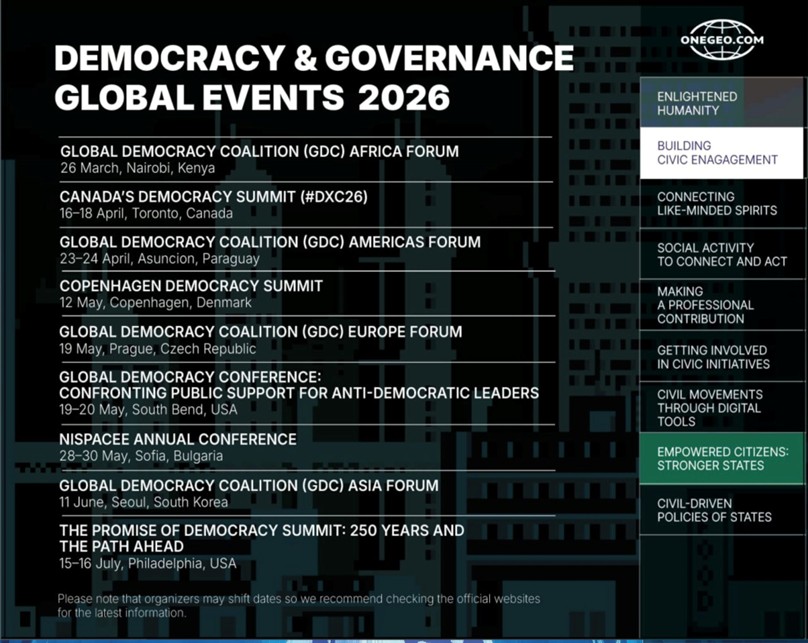 | 25 March 2026 | Discover Upcoming Democracy & Sustainable Governance Events – Planner Series by ONEGEO.COM Global Digital Platform |
